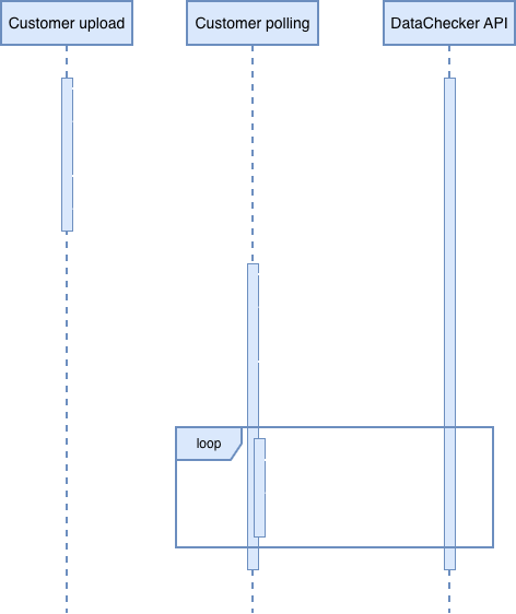 It's recommended that you implement two separate processes. One to handle the upload of the documents and another process that will handle the processing of all the results. The following sequence diagram is an illustration of the processes.